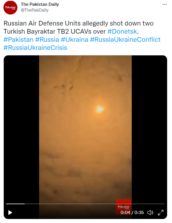 FX168财经报社(香港)讯 俄罗斯防空部队单位在总统普京下令后,被发现击落乌克兰战机。据The Pakistan Daily曝光画面,2架土耳其制Bayraktar TB2 UCAV战斗机,在顿涅茨克(Donetsk)地区遭到袭击。