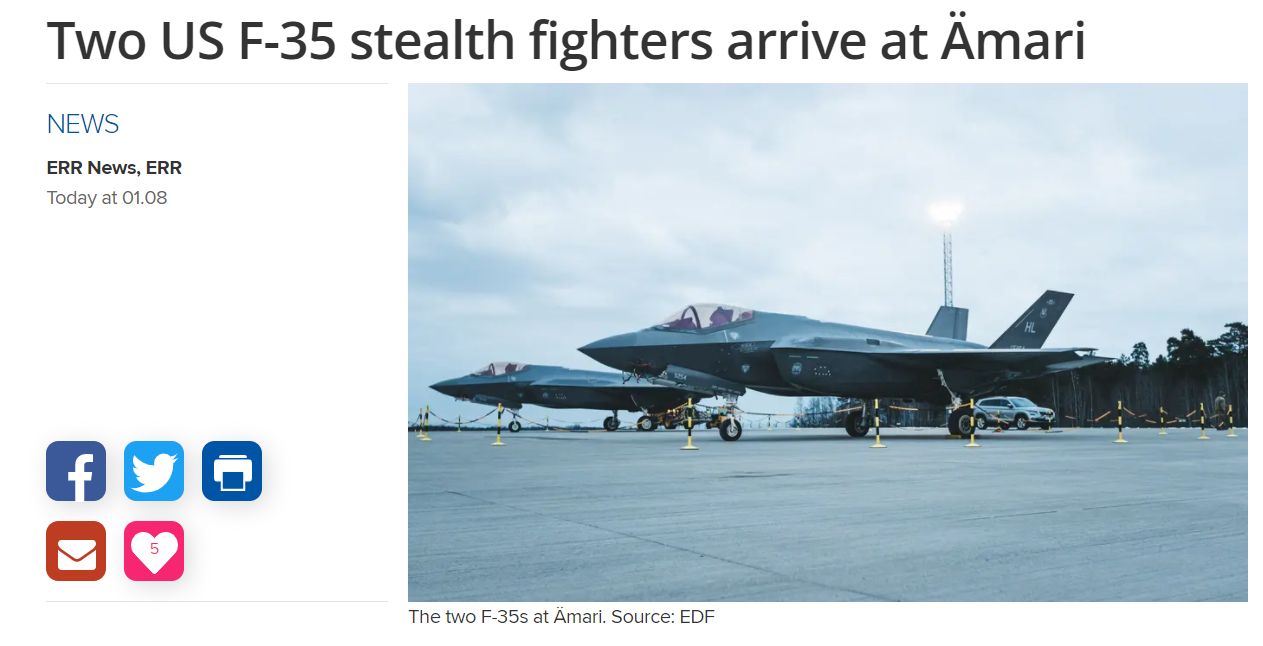 俄罗斯卫星网刚刚消息称,北约在其东翼加强军事部署之际,美军F-35战机已抵达立陶宛。当地时间2月24日,美国总统拜登针对乌克兰局势发表讲话称,美军不会在乌克兰与俄罗斯交战,但是将保卫北约的每一寸领土。