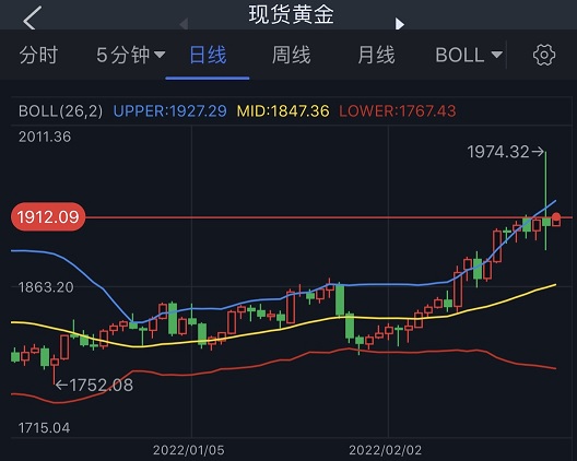 现货黄金周四收报1903.90美元/盎司,下跌5.04美元或0.26%,日内最高触及1974.32美元/盎司,最低触及1880.15美元/盎司。