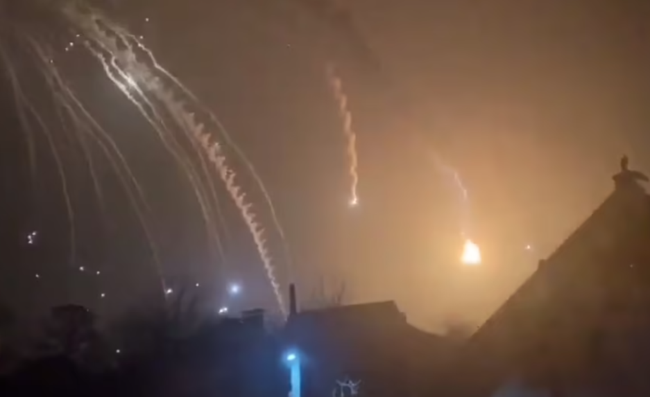 25日凌晨,乌克兰首都遭到轰炸,当俄罗斯总统普京的坦克开到距离基辅不到20英里的地方时,天空一片火光。乌克兰副国防部称,一枚导弹被其反导弹防御系统从天而降。