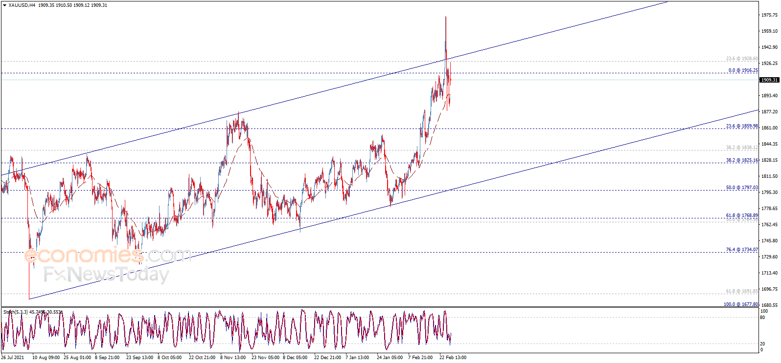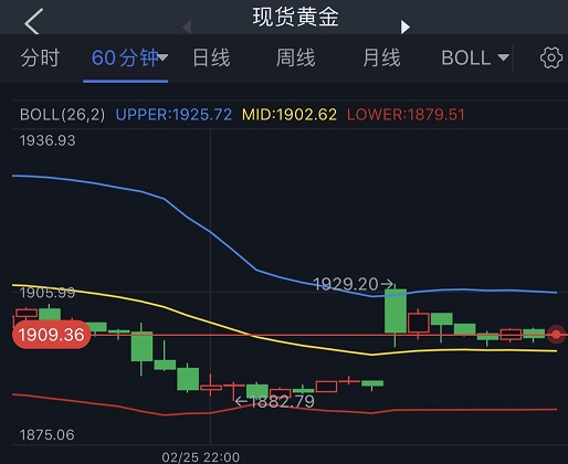 24K99讯 周一(2月28日)亚市尾盘,现货黄金交投在1909美元/盎司附近,日内大涨逾20美元,但已经较日内高点显著回落。知名财经资讯网站Economies.com周一最新撰文,对日内黄金走势进行前瞻分析。