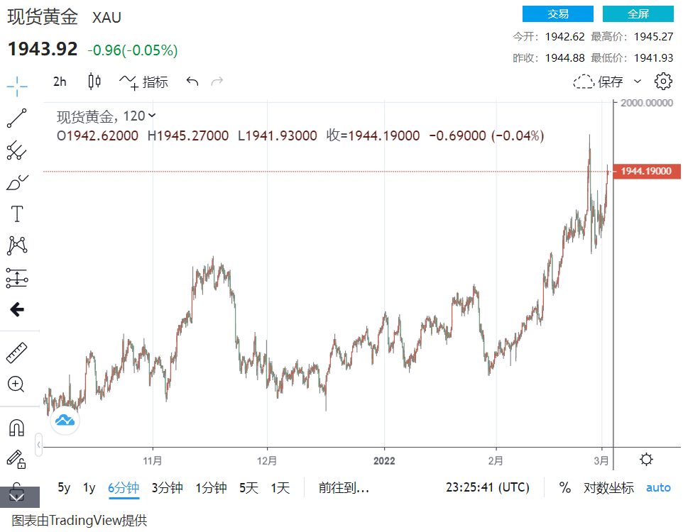 尽管西方国家祭出严厉制裁,俄军持续轰炸乌克兰第二大城哈尔科夫,并暗示将锁定首都基辅的情报和通讯设备,市场担忧战争变得更残酷,避险需求旺盛,黄金期货延续近期涨势,1日收在13个月高点,从白金、钯金到白银全面上涨。ActivTrades高级分析师Ricardo Evengelista提到说:“俄罗斯入侵乌克兰持续主导投资人心态,避险资产因此获得支撑,金价保持在1900美元以上。”