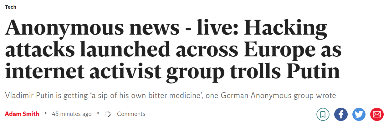 FX168财经报社(香港)讯 俄罗斯侵略乌克兰来到第7日,双方除军队互相对抗,在认知作战、网路及电子作战等领域均,持续展开交锋。为反击俄罗斯入侵,乌克兰黑客组织计划已攻击10多个俄罗斯政府及银行网站,未来将计划对俄国铁路、电网等关键基础设施进行攻击。