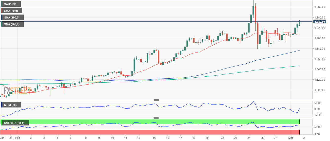 24K99讯 周三(3月2日)亚市盘中,现货黄金短线加速上涨,并逼近1940美元/盎司。FXStreet首席分析师分析师Valeria Bednarik周三最新撰文,对金价技术前景进行分析。